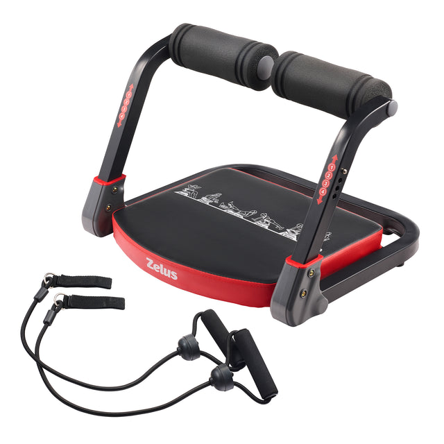 - 2-IN-1 AB MACHINE: This multipurpose ab machine by Zelus is the ideal strength training equipment for your home gym, bringing 4 resistance levels and a pair of arm resistance bands to create the perfect full-body workout in your living room, garage, or office